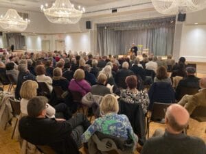 Above – in conversation with Wodek Szemberg at the October 28, 2025 launch of my latest novel, The Seaside Café Metropolis and below a long shot of the audience.